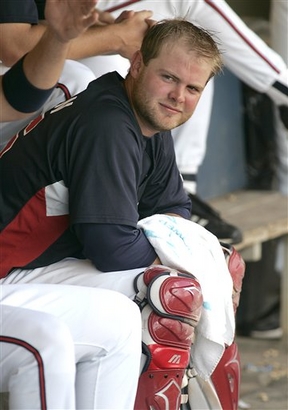 I don’t know that you could ever completely sell me on this, though. I think Heap makes a difference as a catcher even for pitchers like Smoltz. Sticking him on first would be a considerable waste of his talents. Then there’s the problem of replacing him as a starting catcher: Salty? I’d rather see him at first. Based on what I’ve heard about his attitude (from Eddie Perez, even!), I’m not sure how well he would really handle a pitching staff. But I’d prefer Thor at first, depending on how he does this year. I’m pretty firmly in the “trade Salty” camp, which of course translates to keeping Heap at catcher. But if Salty had an amazing year in the minors and we had to go through another Heap injury this season, I might be more inclined to consider moving Heap to first. Until then, I’ll just be biting my nails every time Frenchy makes the dreaded throw home from right.